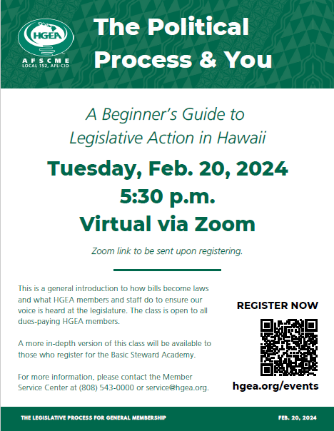 In October 2022, HGEA prevailed against Maui County in our dispute for hazard pay for more than 1,300 workers. Our members in that case have already been paid out by the county. In October 2023, an arbitrator in our case against Kauai County conceded that our members in that jurisdiction faced a hazard. A pending follow-up case will determine payout eligibility. HGEA has numerous outstanding arbitrations, including in Hawaii County and the state executive branch.